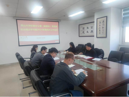 11月1日,纪委办公室(监察处)党支部在世纪楼1811会议室,组织召开政治理论学习会暨2024年秋季学期第四次工作会议,纪委书记、监察专员孙录印出席会议并讲话,会议由纪委副书记、纪委办公室主任、监察处处长赵希海主持,支部党员参会。